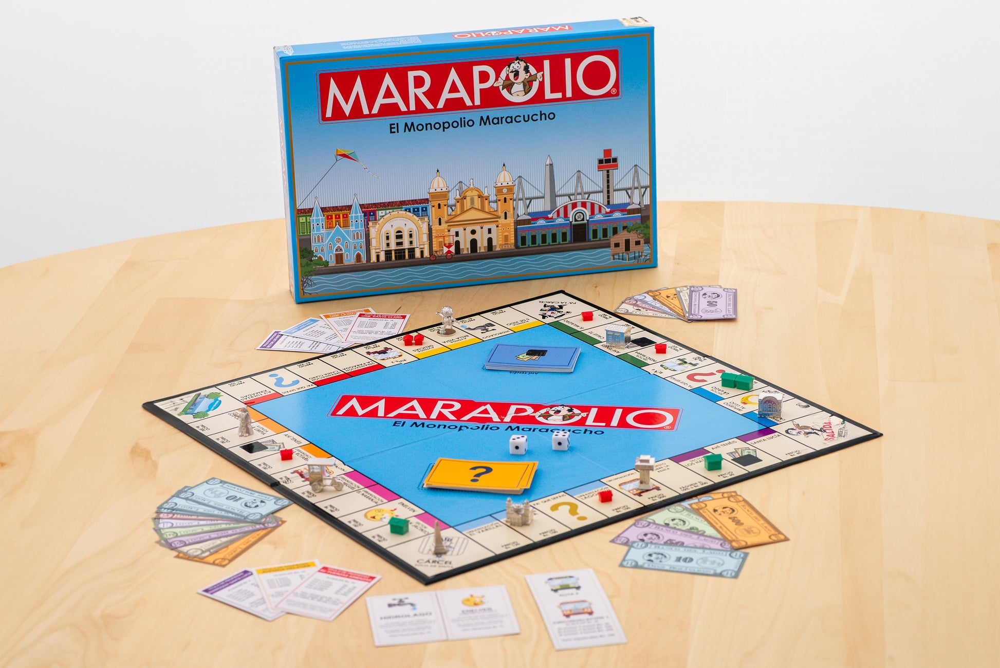 ¡Recorre Maracaibo y prende el mollejero! Marapolio es mucho más que un juego de mesa: es una divertida adaptación del clásico Monopoly con el sabor único de Maracaibo. Compra propiedades icónicas, negocia con picardía zuliana y aprende expresiones graciosas que te sacarán carcajadas mientras recorres nuestra querida ciudad. Ideal para los que están lejos y quieren sentirse cerquita de su tierra, compartiendo en familia o entre panas y prendiendo un buen mollejero de diversión maracucha.